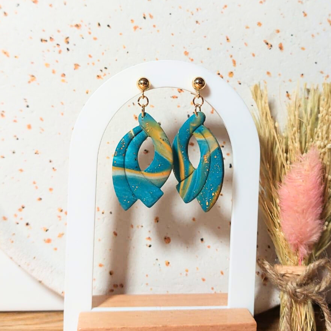 Boucles d'oreilles en argile polymère. Bleu/jaune