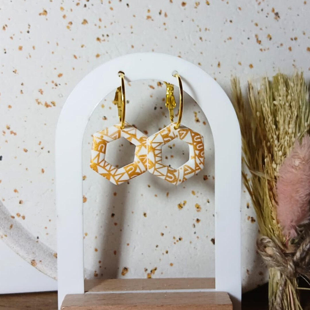 Boucles d'oreilles en argile polymère. Blanc/doré